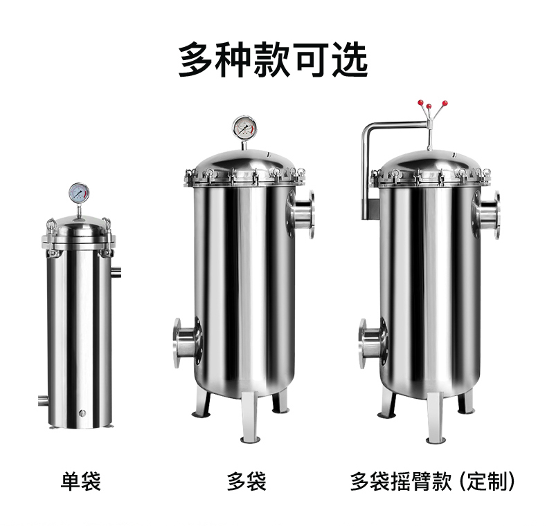 內外鏡麵拋光或噴砂亞光處理。多袋式過濾(lǜ)器、PP(多(duō)袋)碳鋼多袋式(shì)過濾(lǜ)器(qì)主要用於過濾水,飲料,化學液體中的雜質,常規濾袋類型有1#、2#,多(duō)袋式過濾器內有不鏽鋼濾籃作為支撐,這樣的過濾器過濾麵積大,過濾效果好,並且帶搖臂、吊環螺栓的打開方式很方便,有效降低了大流量過濾的成本。水(shuǐ)流量可以達到10m²/h到1080m²/h -